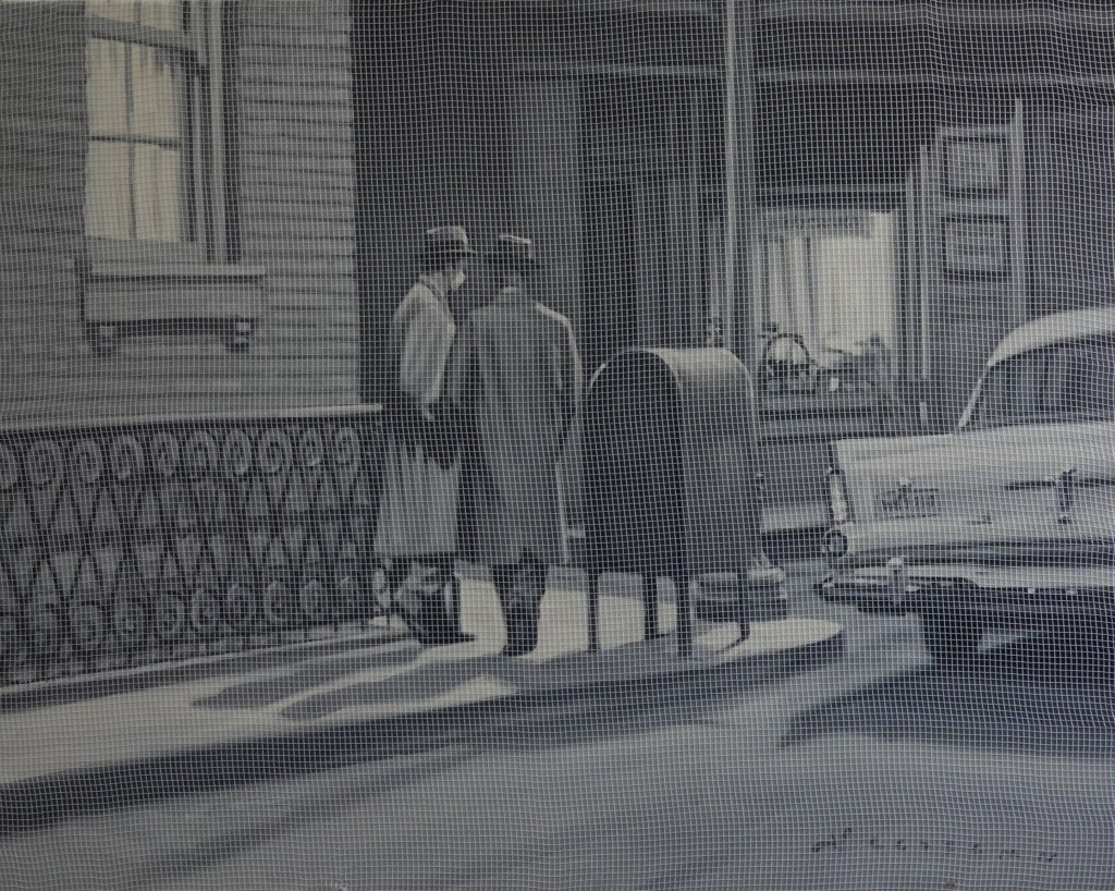 After selling works that I’ve wrapped in bubble plastic for shipping I’ve discovered that it had always an very interesting look. There was always a nice realistic recognition left, but mostly with to much lost of the original paintingskin and brushstrokes. So I went to the curtainstore searching for the right translucent effect. Finallly here it is, my first painting “Shirley”, based on a still of actress Shirley Temple, “wrapped” in nylon tulle. Ofcourse I’ve still lost some of the look of the paintskin and brucestrokes but the result is a so very interesting and unusual realistic, almost 3d look, that it’s worth it. I’ve covered several works with it but only the strong servive. There’s actually a kind of nice transition between a painting and photography. It’s hard to get it right photographed but I’ll hope these will do. Click photo to enlarge for a better view and tell me what you think. After you clicking on the image you want to see, you can view the painting in full HD by clicking first i and then “view full size” below the image.