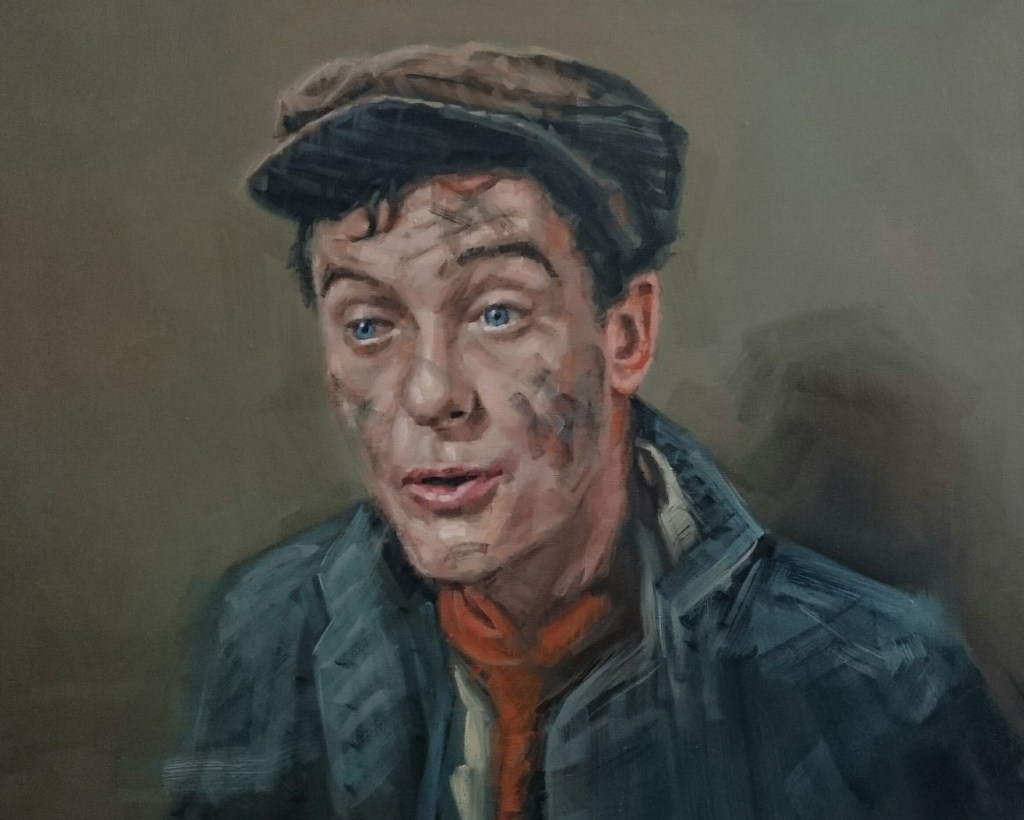 ENG A good example of the possibilities and opportunities of social media is the start of this serie of paintings. Searching for a “Nostalgic Mood” I came across the tv serie “The Dick Van Dyke Show”. Like the old black and white FilmNoirs and “Alfred Hitchcock Presents” is this also particularly attractive material for a beautiful composition to start with. Although I do not wanted emphatically a famous person to paint, painting famous people is allways something to be carefull at, I contacted Mr Van Dyke through twitter to see if maybe I could get official permission and offering the work “Next, Mr. Van Dyke!”. Pretty soon I’ve got, to my surprise, an enthusiastic reaction from Mrs. Arlene Silver Van Dyke and if I might want to get involved with an art show in Malibu she would organize, at the occasion of his 90th birthday in December. Who would have thought that there could arise contact and collaboration with a Hollywood legend. And also from the classic Hollywood period so inspiring to me. In December there will be another show when his 90th birthday will be celebrated at Disneyland USA. (#DVDturns90). A very special thanks to Mrs. Arlene Silver Van Dyke who made this possible. For commissioned work with Mr. Dick Van Dyke contact me by mail. Click thumbnail for full color image.