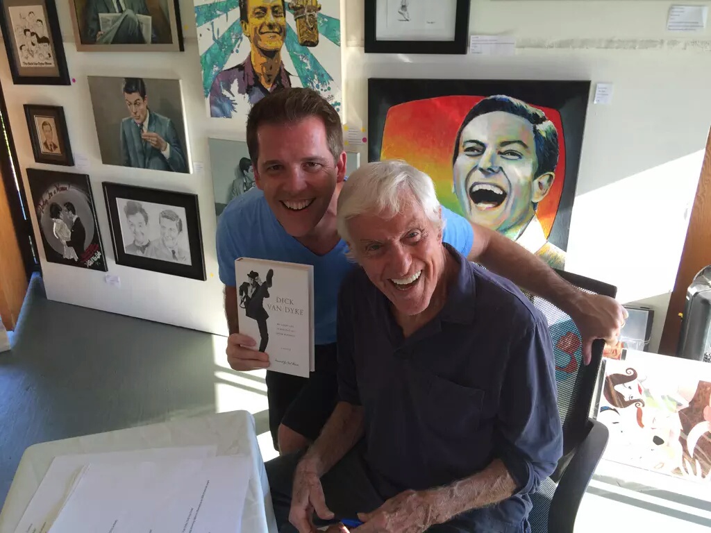 NL Een mooi voorbeeld van de mogelijkheden en kansen die sociale media bieden is wel de start van deze serie schilderijen. Zoekende naar een “Nostalgic Mood” stuitte ik op de serie “The Dick Van Dyke Show”. Net als de “Alfred Hitchcock Presents” is dit bijzonder aantrekkelijk materiaal voor een mooie compositie. Hoewel ik niet nadrukkelijk een bekend persoon wilde schilderen, beroemde personen ligt altijd gevoelig, heb ik via twitter contact gezocht om te kijken of ik wellicht officieel toestemming zou kunnen krijgen en het werk “Next, Mr Van Dyke!” aangeboden kan worden. Al vrij snel kreeg ik, tot mijn verbazing, een enthousiaste reactie van Mrs Arlene Silver Van Dyke hierop en met de vraag of ik misschien mee wil doen met een Art show in Malibu die zij zou organiseren, dit ter gelegenheid van zijn 90ste verjaardag in december. Wie had dat kunnen denken dat er contact en medewerking kon ontstaan met een Hollywood legende. En ook nog uit de periode die mij zo inspireerd. In december komt er nog een show wanneer zijn 90ste verjaardag gevierd zal worden in Disneyland USA. (#DVDturns90) Een speciale dank aan Mrs Arlene Silver Van Dyke die dit allemaal mogelijk heeft gemaakt.